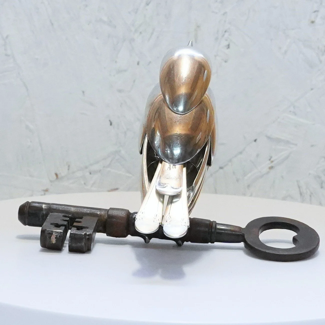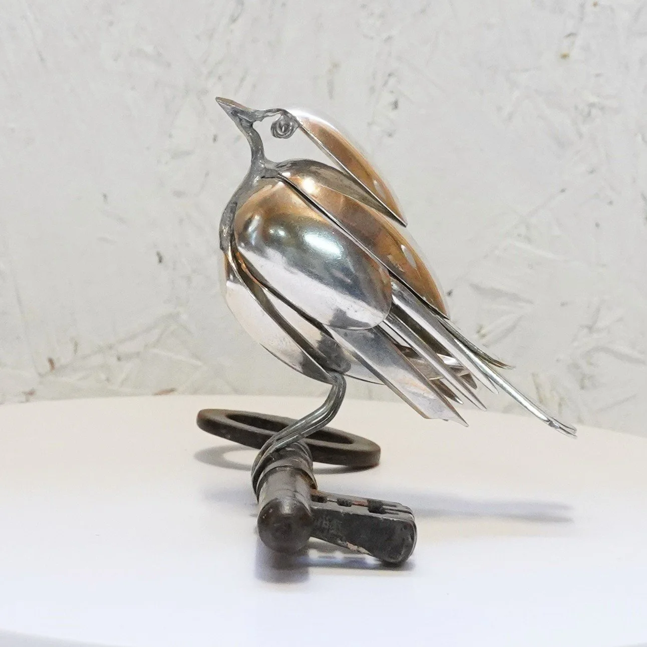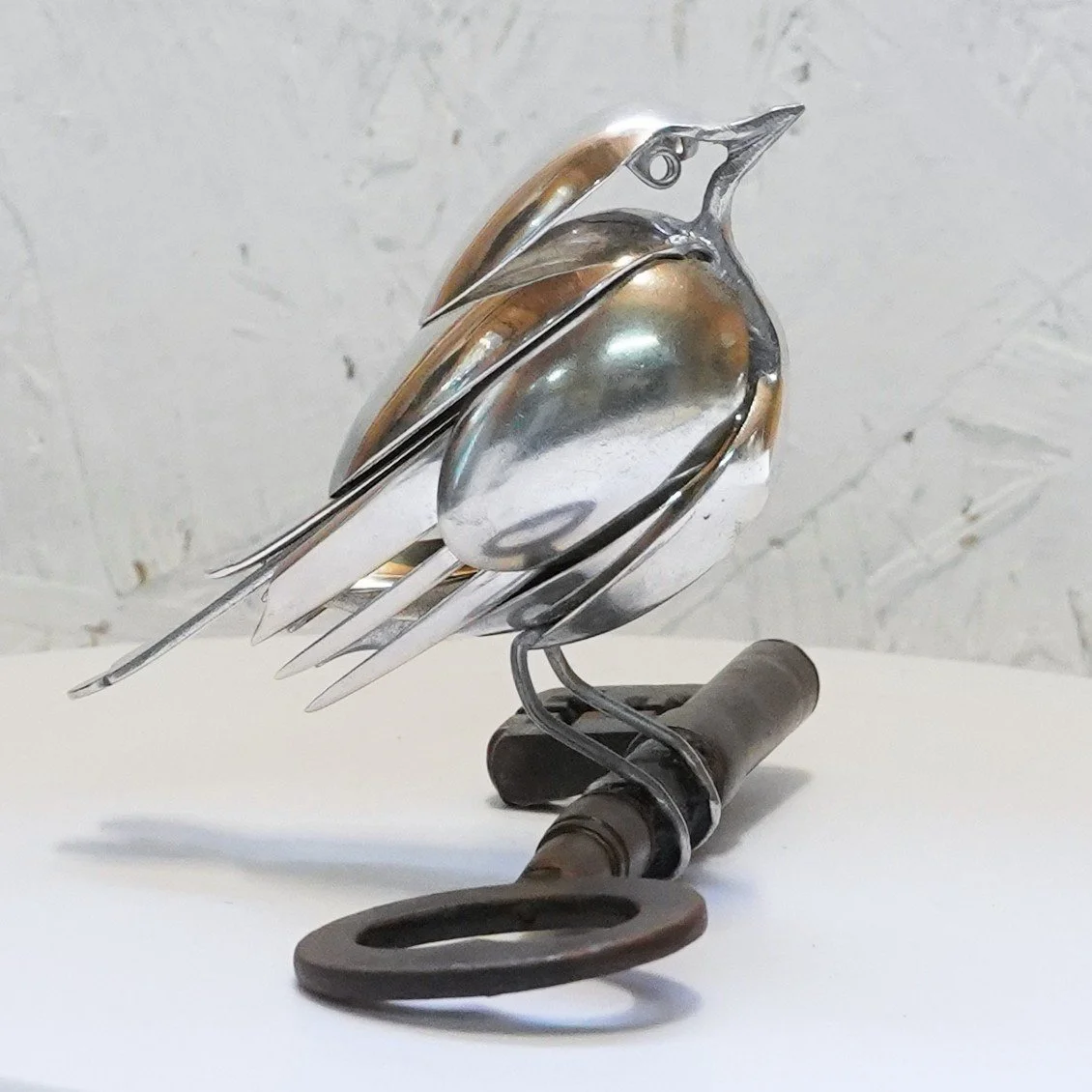 Robin created from vintage epns cutlery and mounted on a vintage key.
